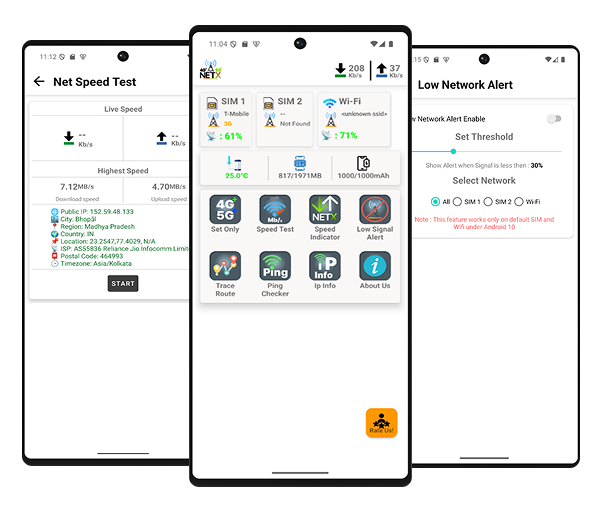NetX is an all-in-one network tool designed to monitor and optimize your mobile network and internet performance. It provides real-time network signal information, helping you determine the best network in your area. You can force your device to stay on 4G or 5G to prevent unwanted network switching. Additionally, NetX offers internet speed tests, low network alerts, ping tests, traceroute, and IP info tools, giving you complete control over your network connectivity.